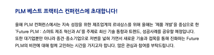 7월 4일 코엑스에서 열리는 PLM베스트프렉티스 컨퍼런스에 한 세션 발표를 하게 되었습니다.