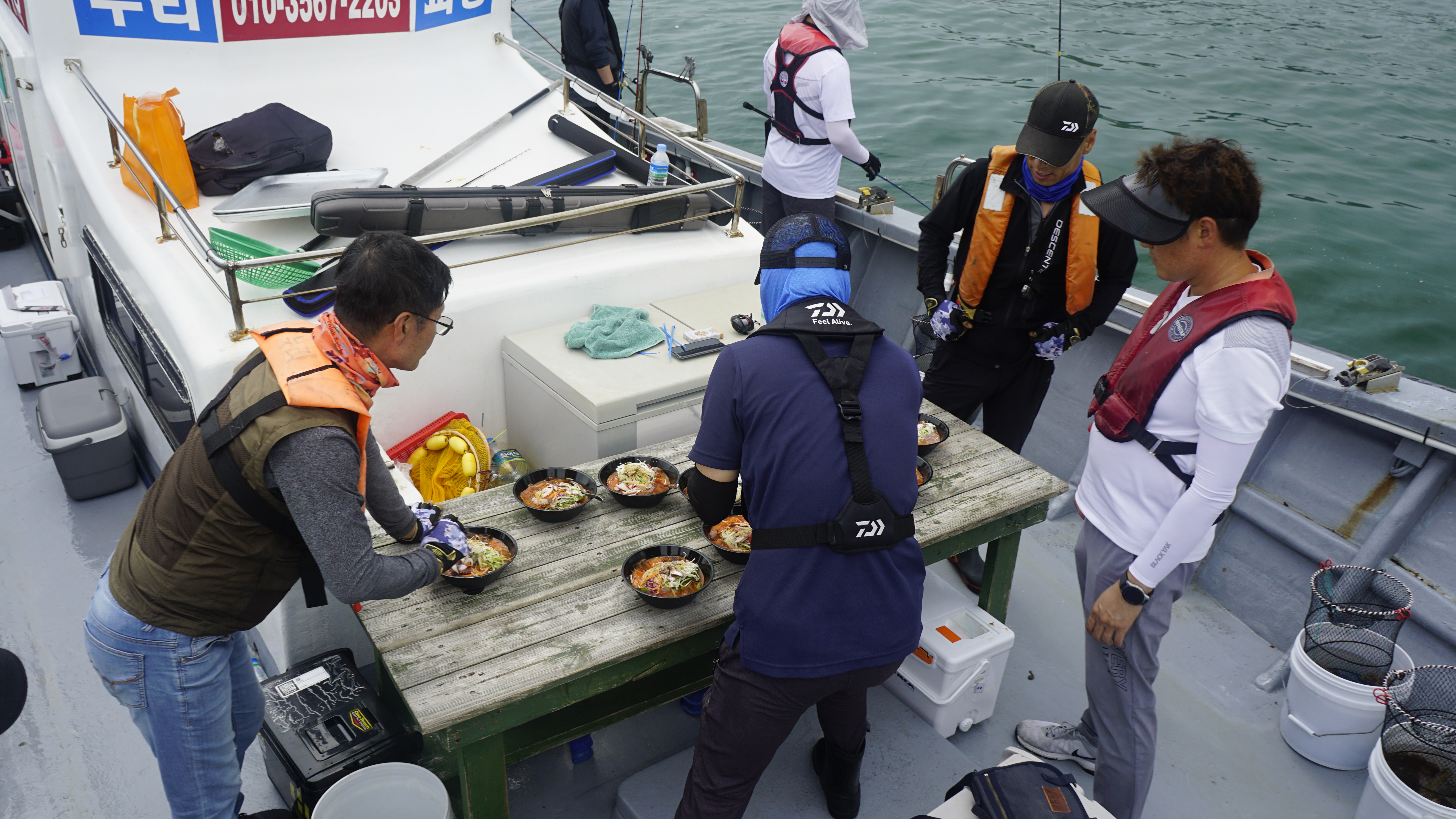 낚시배 출항은 새벽 5시 그리고 오후2시에 돌아온다.