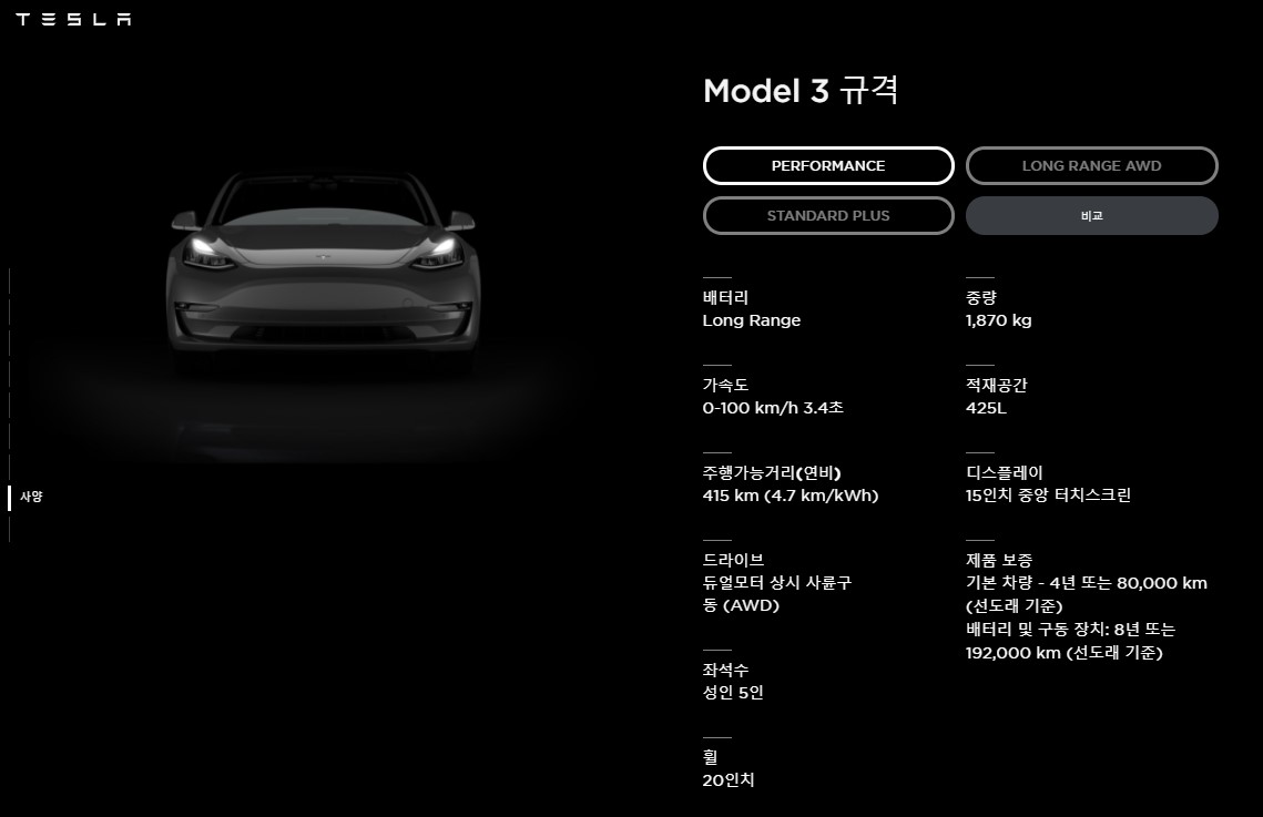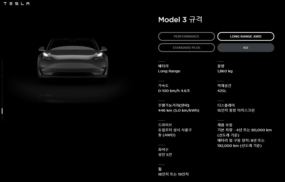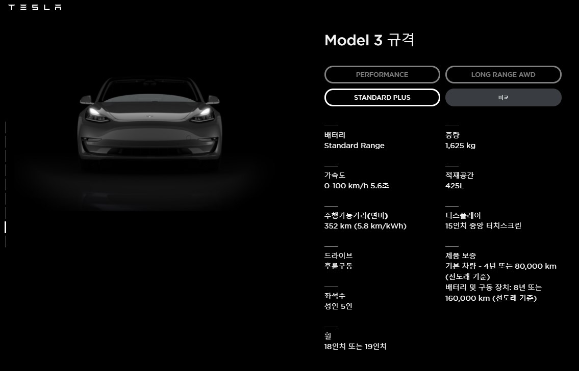 테슬라 홈페이지에서 Model 3 정보 를 가져 왔습니다.