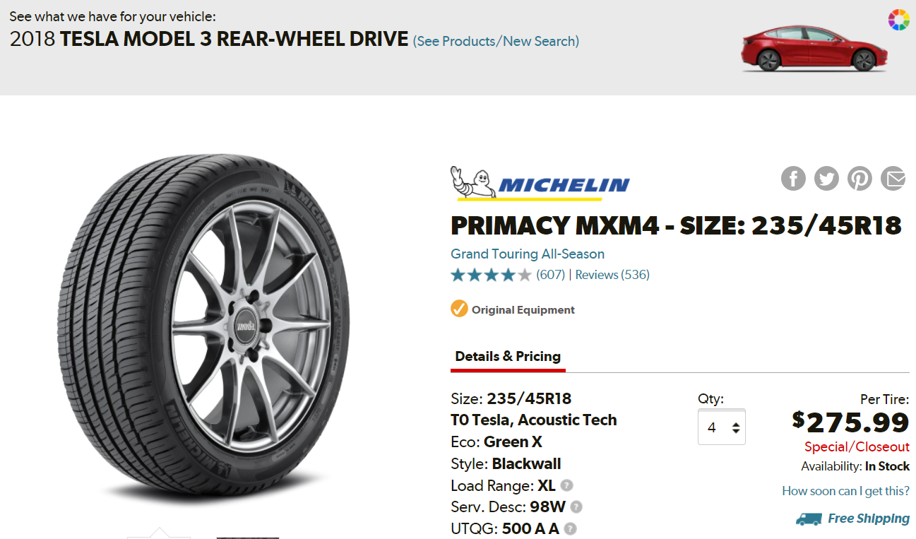 다시 Model3 ... 타이어는 미쉐린 235/45R18 기본 장착