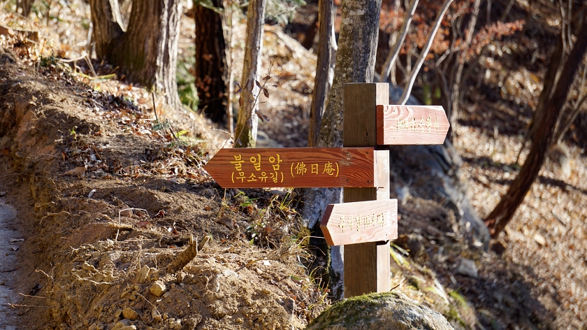 드디어 불일암의 입구를 알리는 펫말
