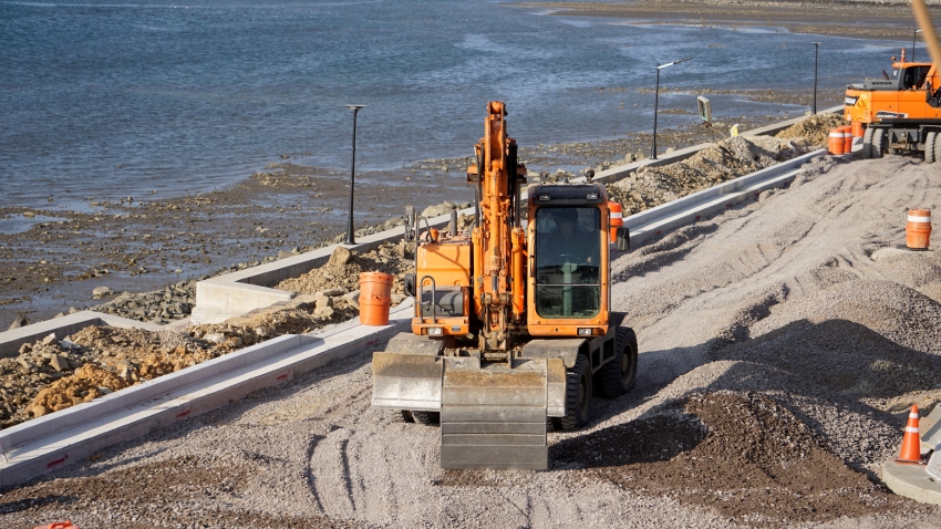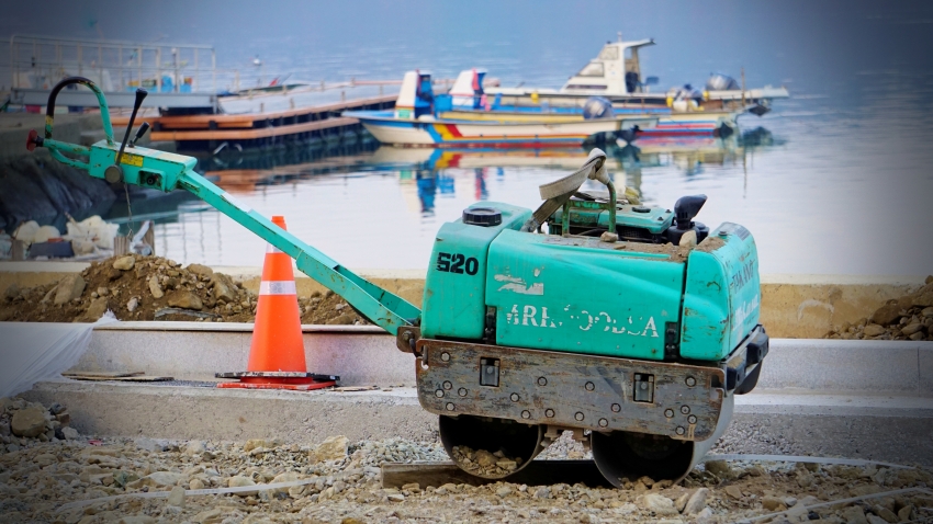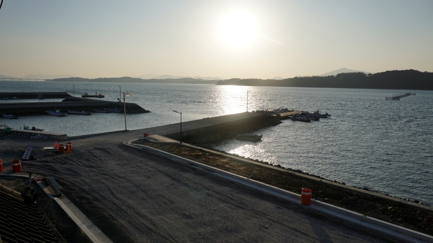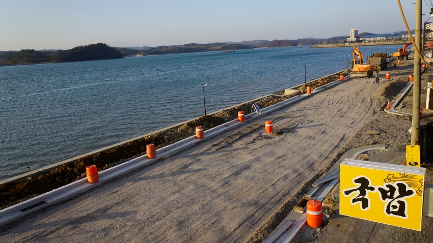 사천 바닷길 옆 해안도로 공사가 막바지에 있다.
