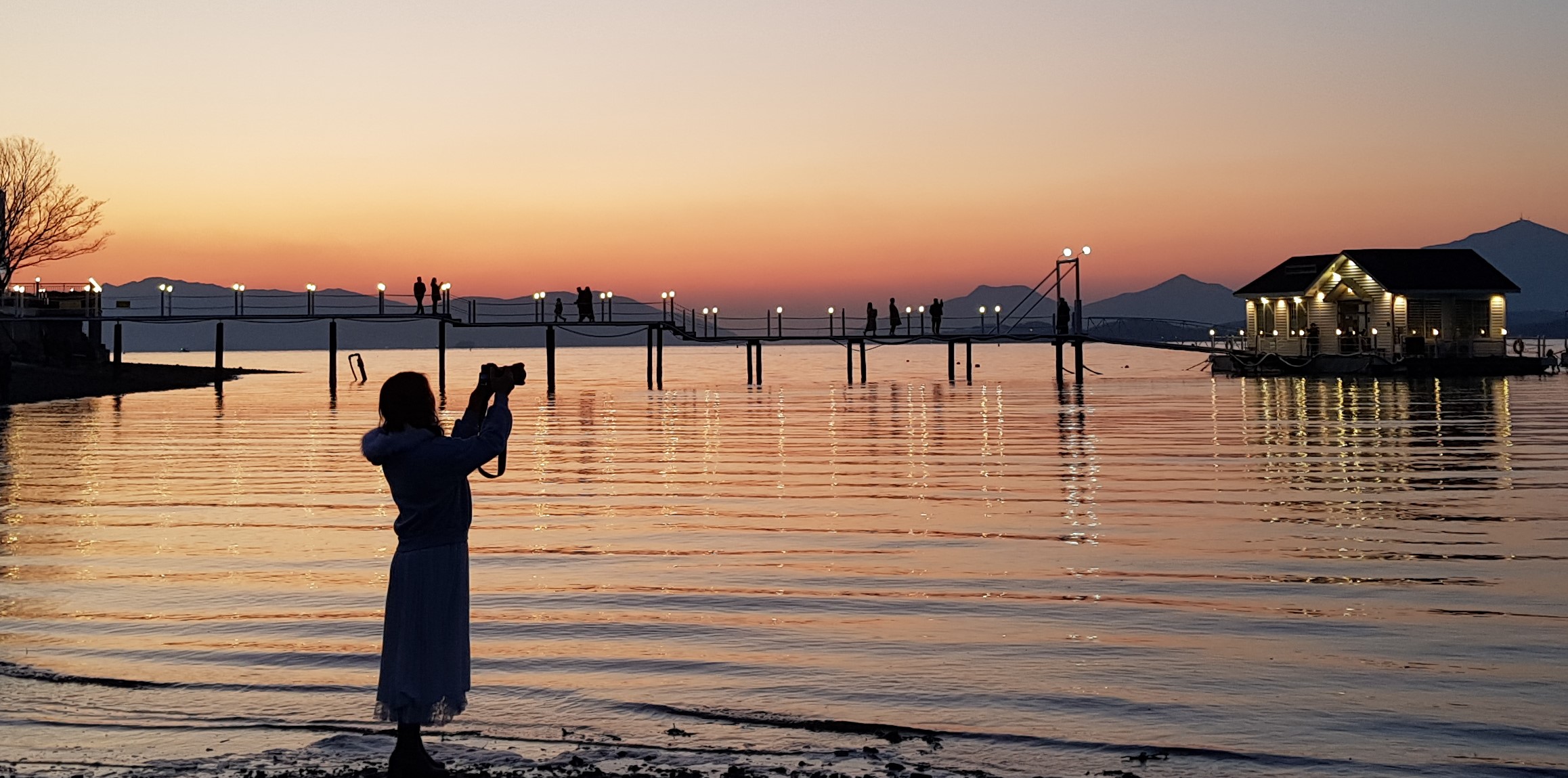 여름에는 해가 바다로 떨어져서 그림이 더 좋다.