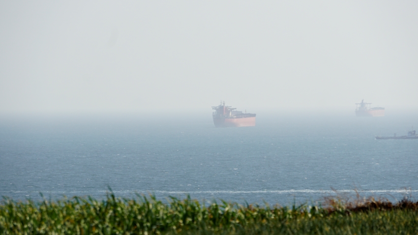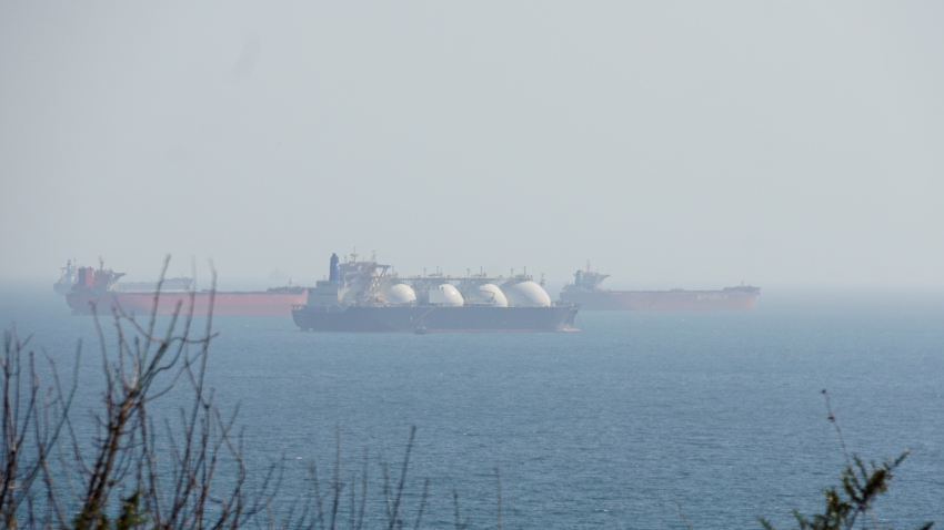 저 멀리 유조선과 LNG 선이 보인다.