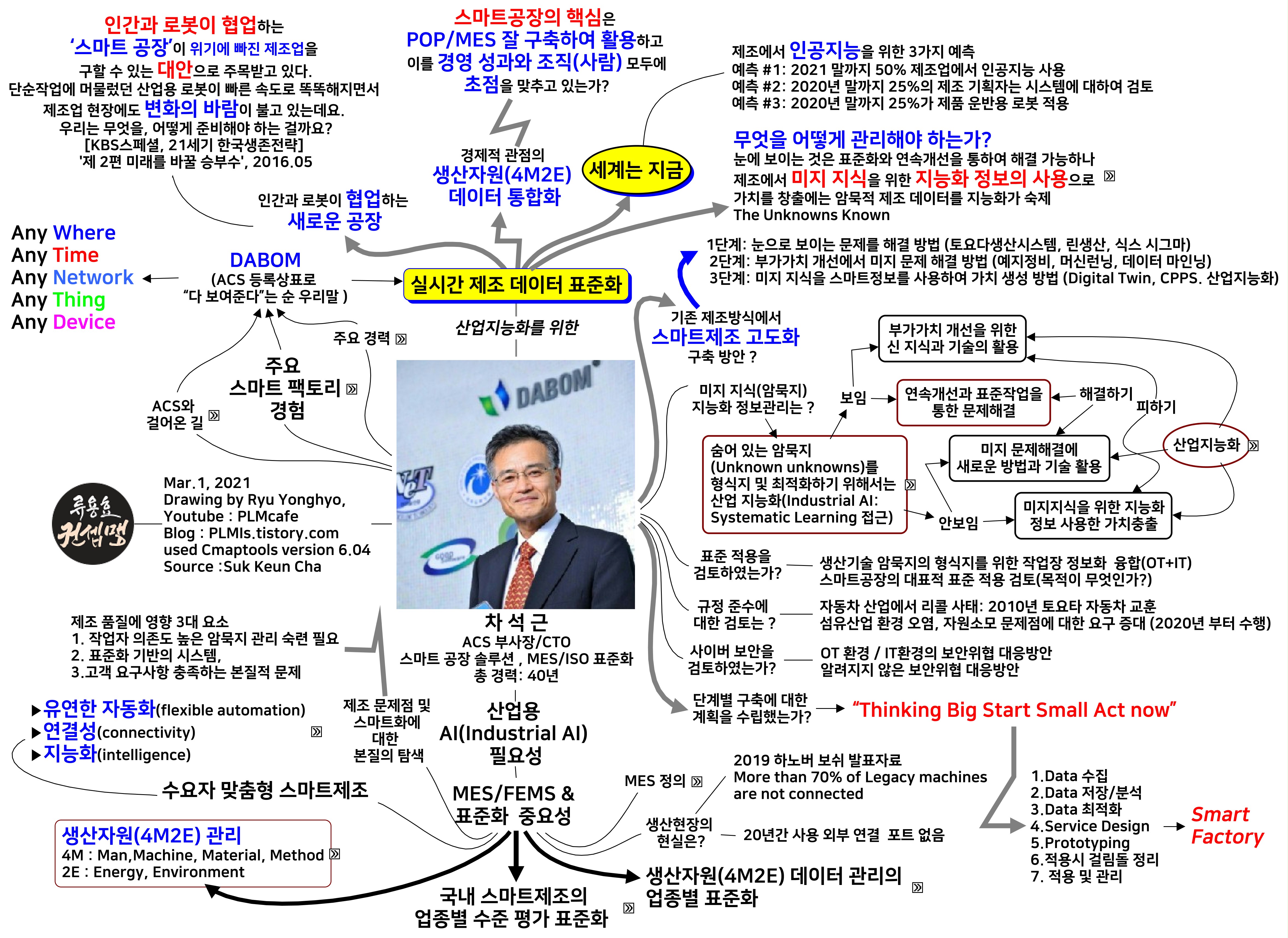 눈에 보이는 것은 표준화와 연속개선을 통하여 해결 가능하나, 제조에서 미지 지식을 위한 지능화 정보의 사용으로 가치를 창출에는 암묵적 제조 데이터를 지능화가 숙제이다.