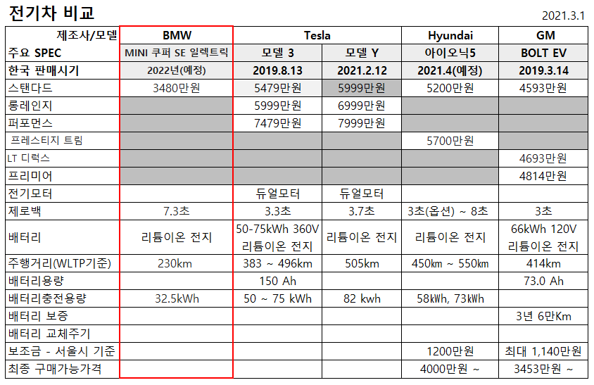 MINI EV에 대해 깨알같이 상세하게 분석한 블로그이다.