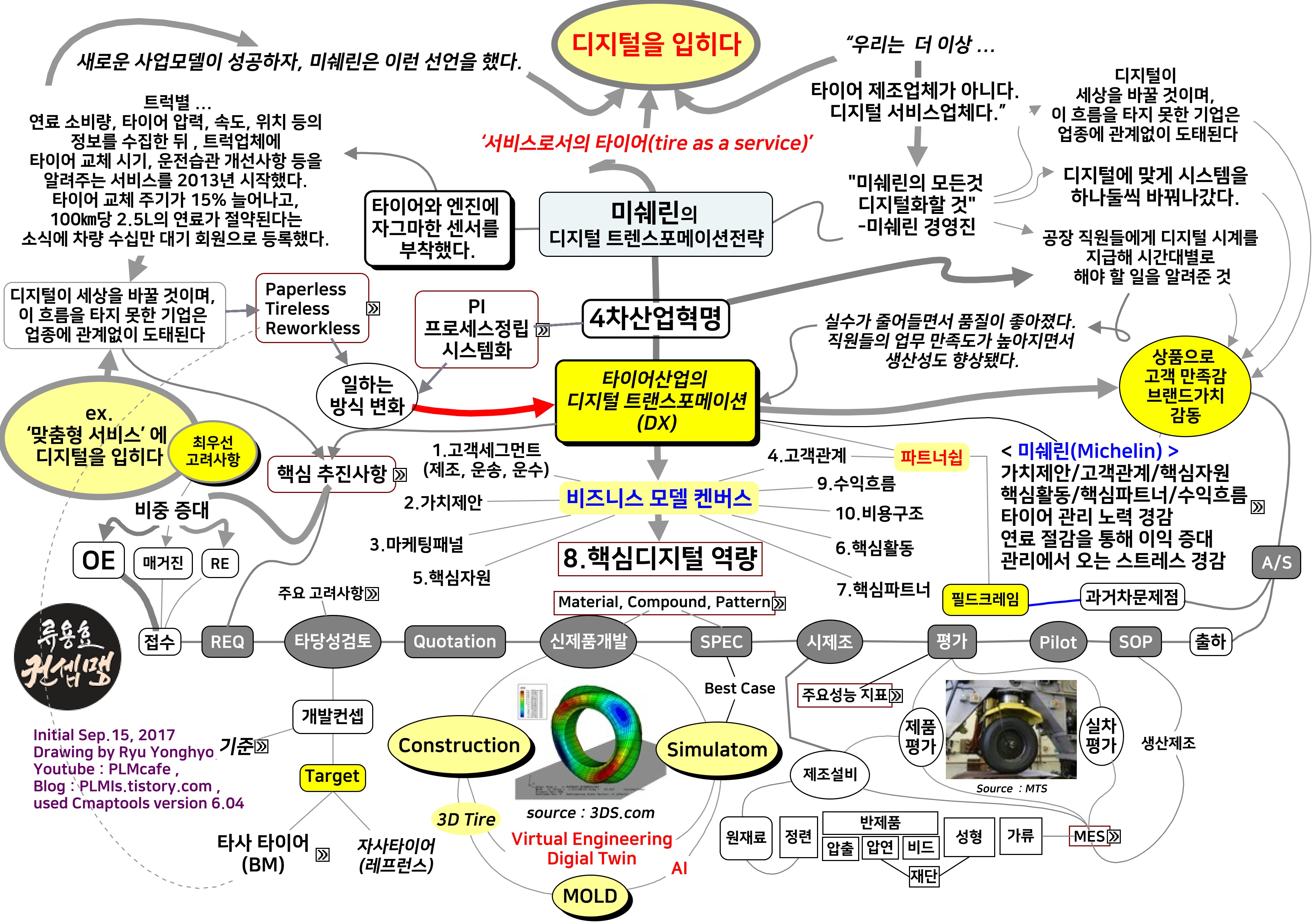 미쉐린은 제품 개발 프로세스에서 스펙 검토에 시뮬레이션 과정을 거치도록 업무를 프로세스화하였다고 한다. 하나의 타이어 스펙을 결정하는 과정에서 수 십번 반복되면서 생성된 데이터는 고스란히 빅데이터 분석, AI 알고리즘에 의해 설계인자와 성능인자간의 연관관계를 통해서 샘플 제작에 반영된다.