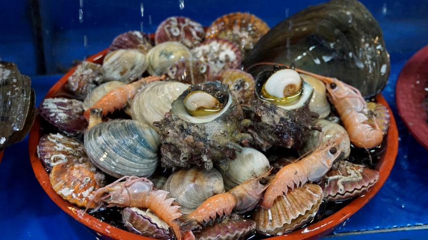 우리는 뿔소라 2만원, 새우 1만원 을 샀다. 이게 1만원치 라구요 ?