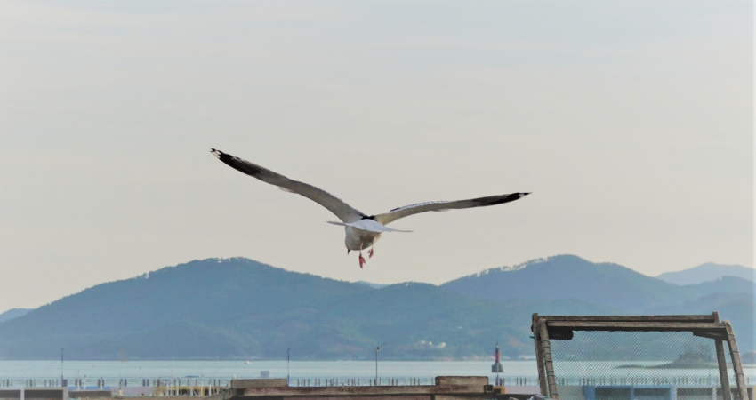 어슬렁 거리는 갈매기 한마리가 눈에 뛴다.