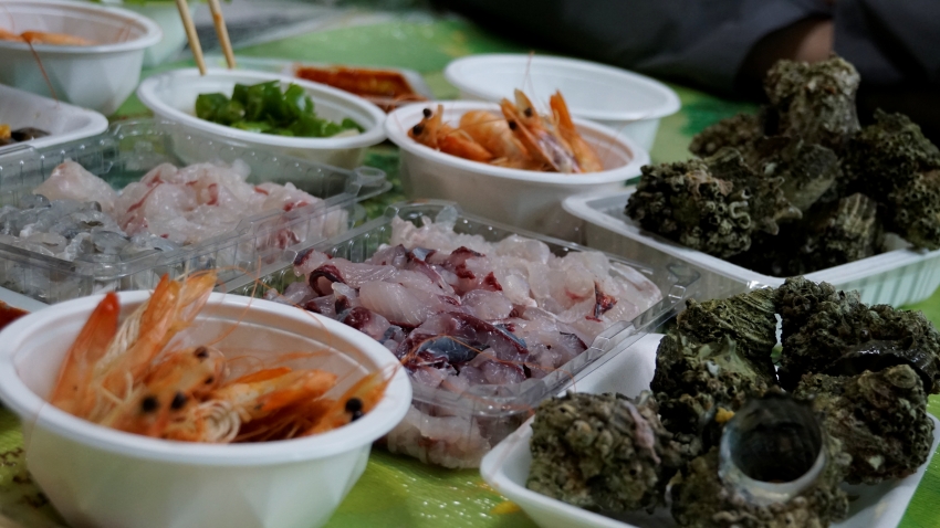 사장님은 조개, 소라, 싱싱하게 먹는 방법도 가르켜 주신다.