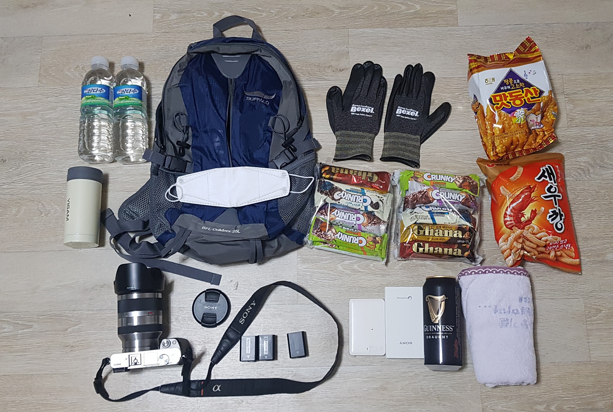 사전 준비... 요기서 맥주만 안가져 가고 다 가져 갔는데, 귀환 품목은 맛동산