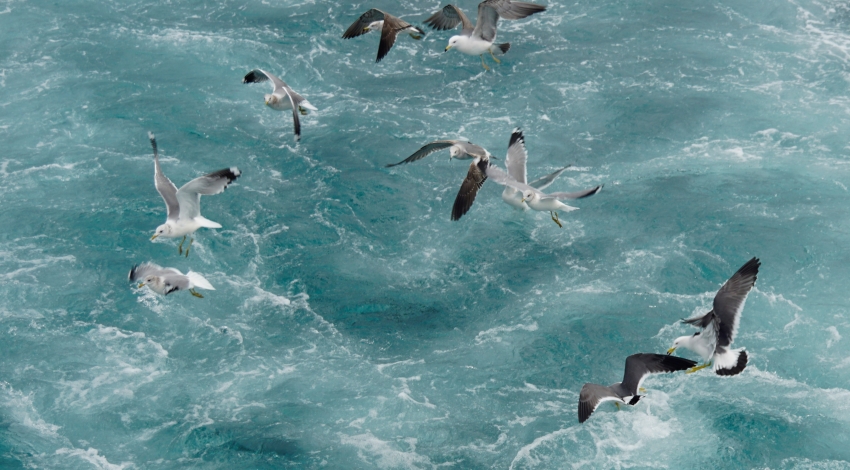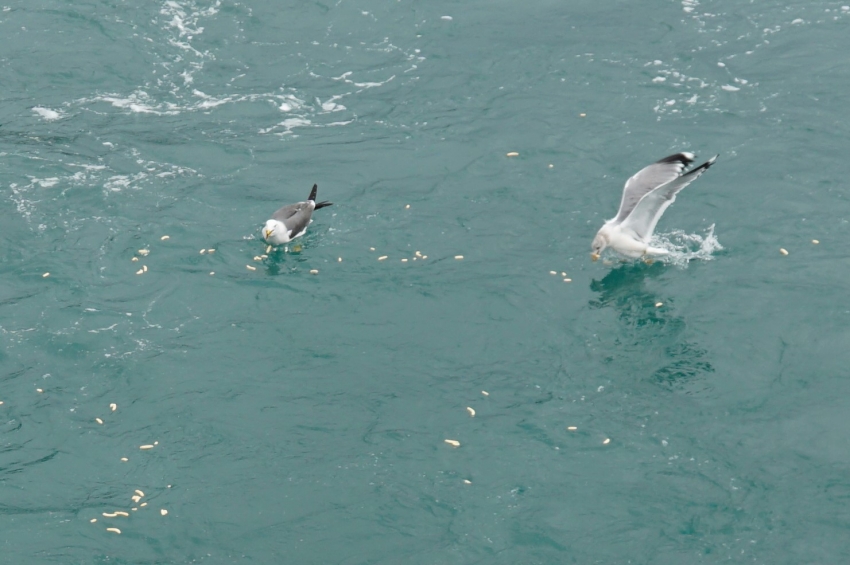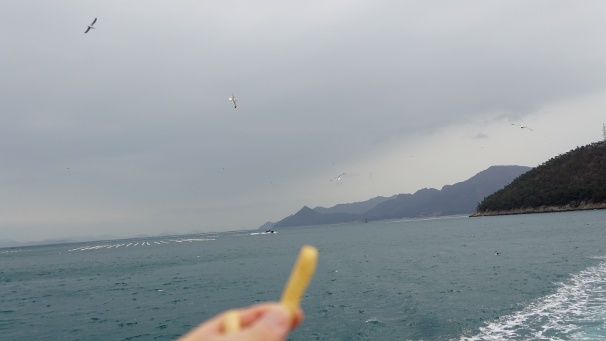 새우깡은 돌아오는 배에서 갈매기들에게 선사했다.