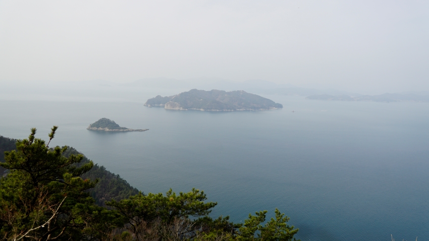 상도와 하도의 2개섬이 사량대교로 연결되어있다.