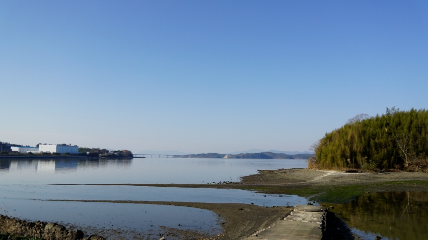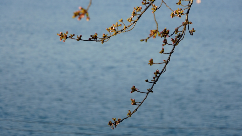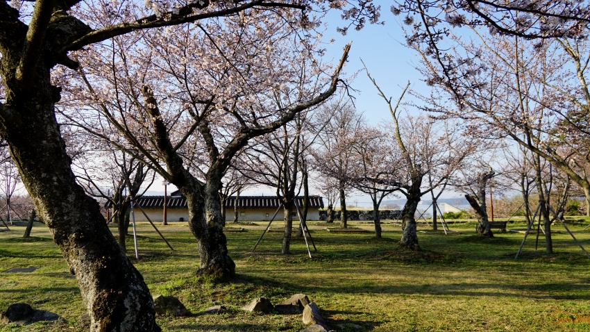 선진리성에서 바라본 바다... 그리고 그 속에 벚꽃