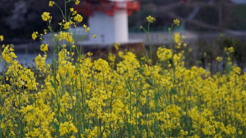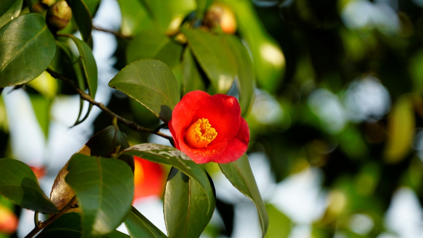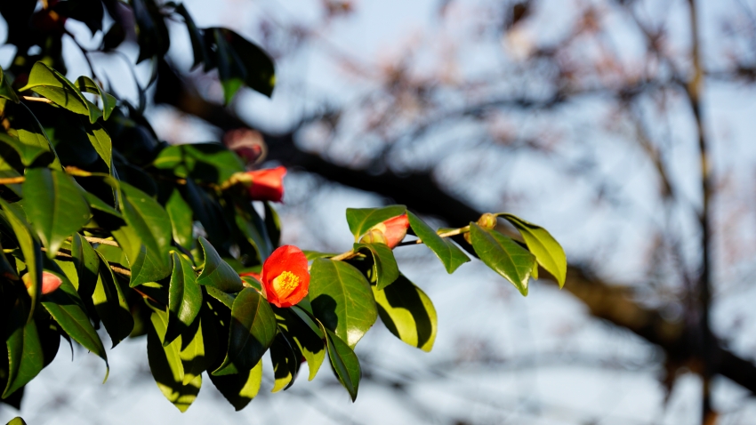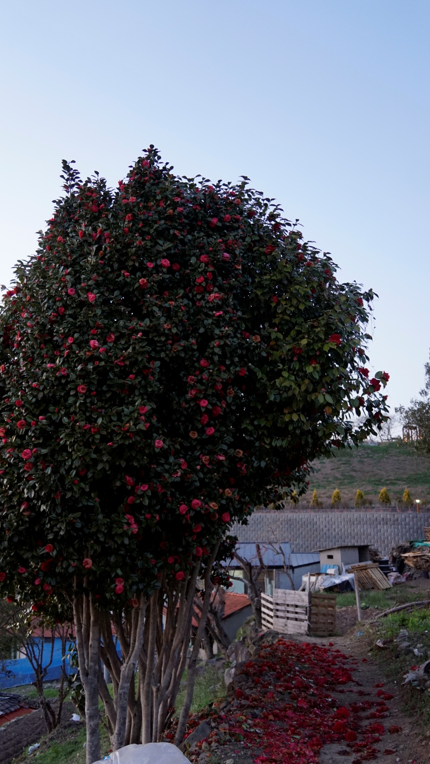 동백나무가 한줄로 늘어서 있어서 바다 풍경과 함께 동백꽃을 감상하기 딱 좋다.