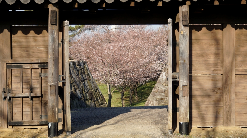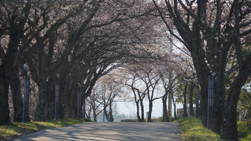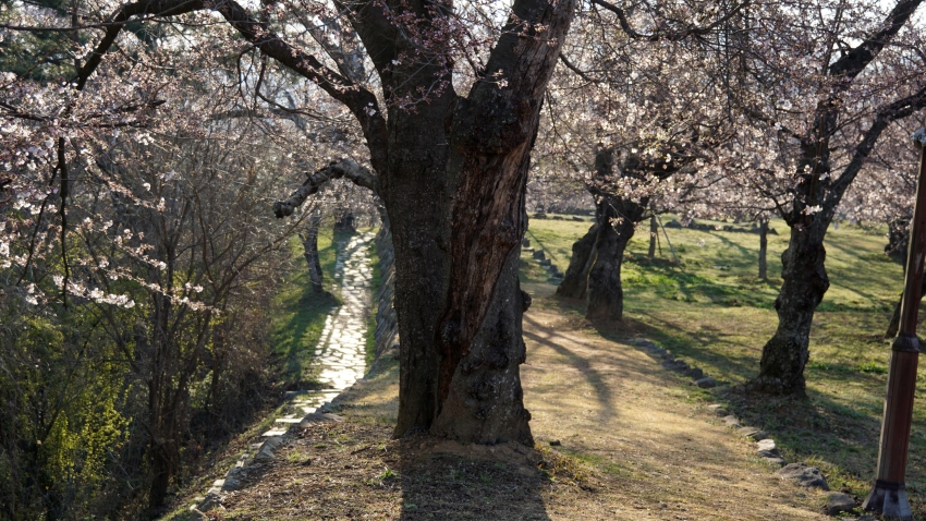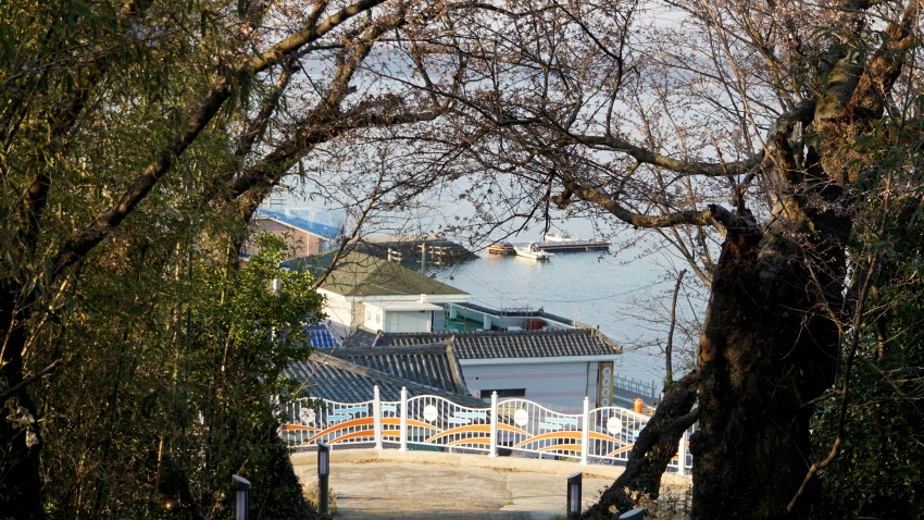 선진리항에서 선진리성으로 들어가는 입구이다. 아름드리 벚꽃나무들이 좌우로 늘어서 있다.