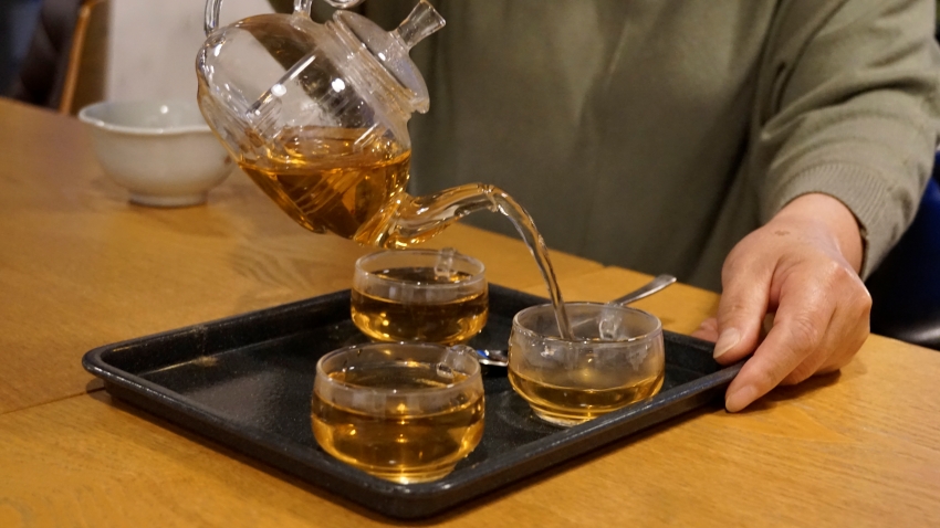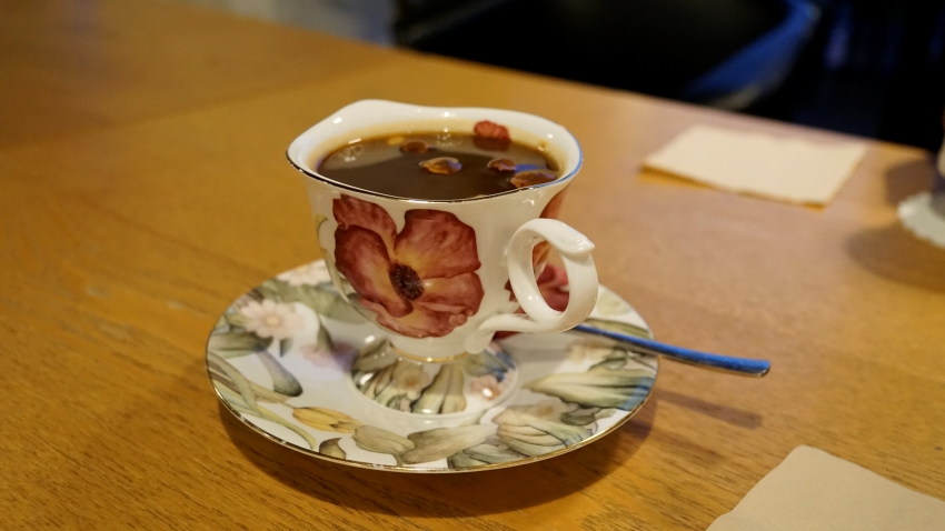 커피 리필 에 이어 우롱차 싸비스.