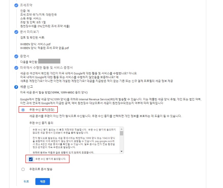 구글 애드센스 미국 세금 정보 입력 및 제출 방법