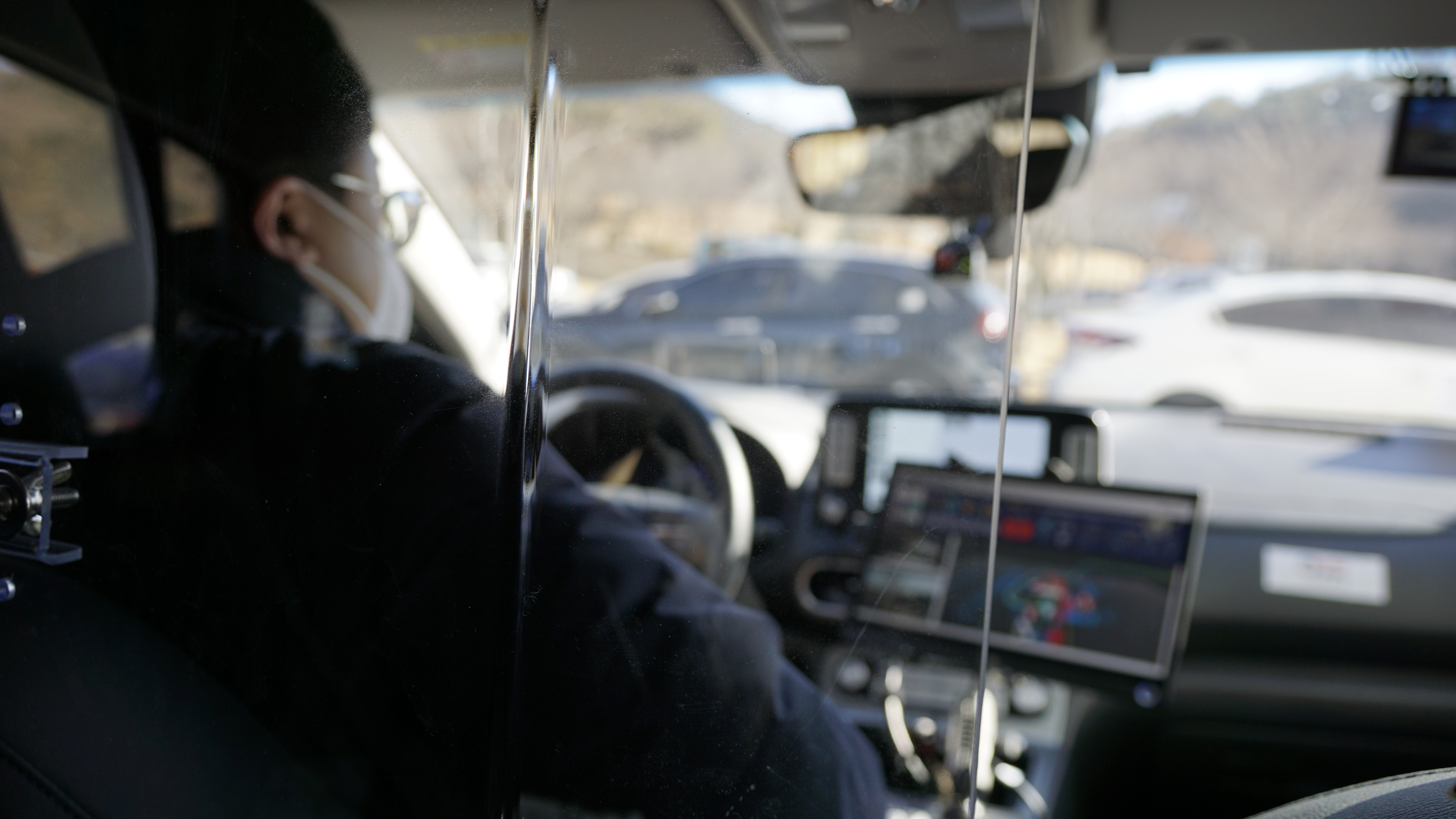 자율주행차 설치를 한참하고 있는 중이고, 그 옆에는 오래된 연구기자재가 보인다. 타원형의 스크린에 자동차 시뮬레이션으로 보인다.
