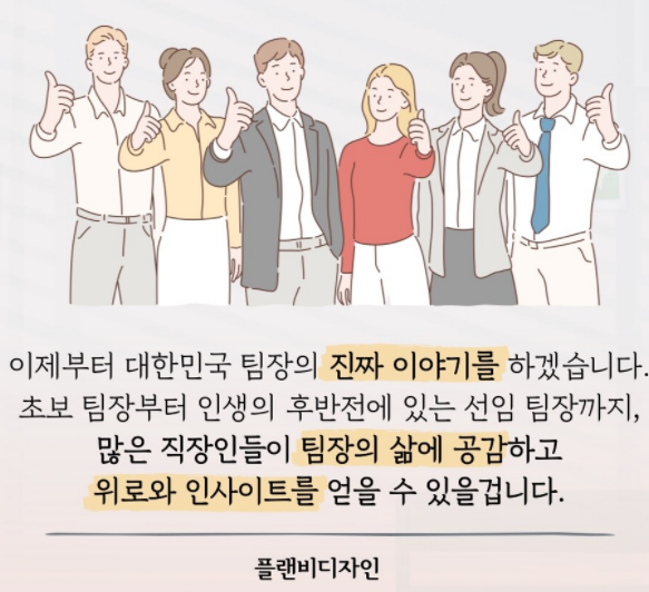 그곳에서 고뇌하는 팀장님들과 앞으로 될 미래의 팀장님들과 경영자분들도 읽었으면 하는 책이다.