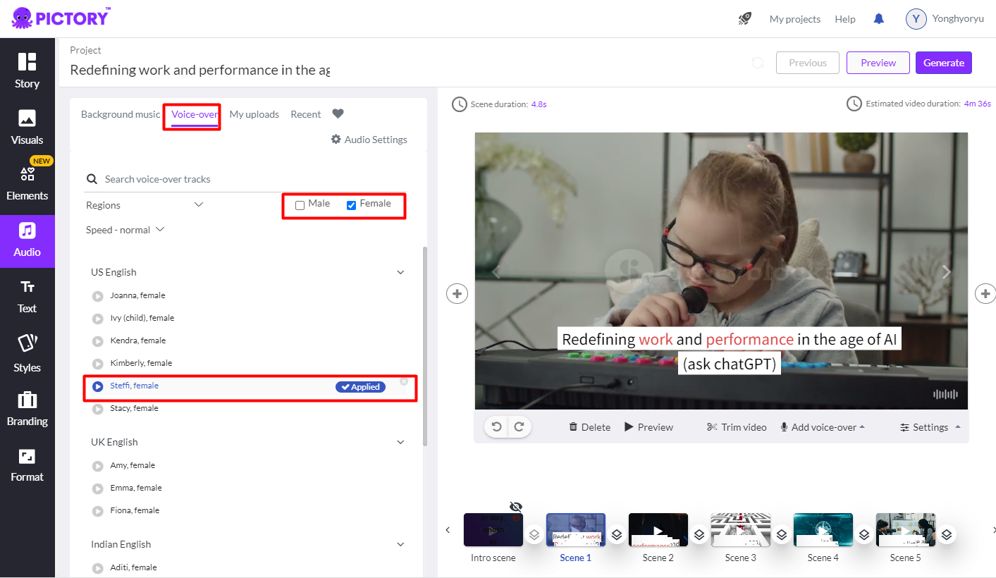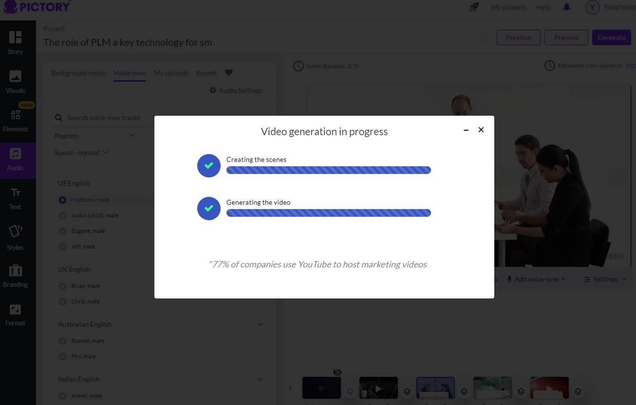 절차는 text script를 추가하고 나면, Pictory.ai의 절차가 진행된다.