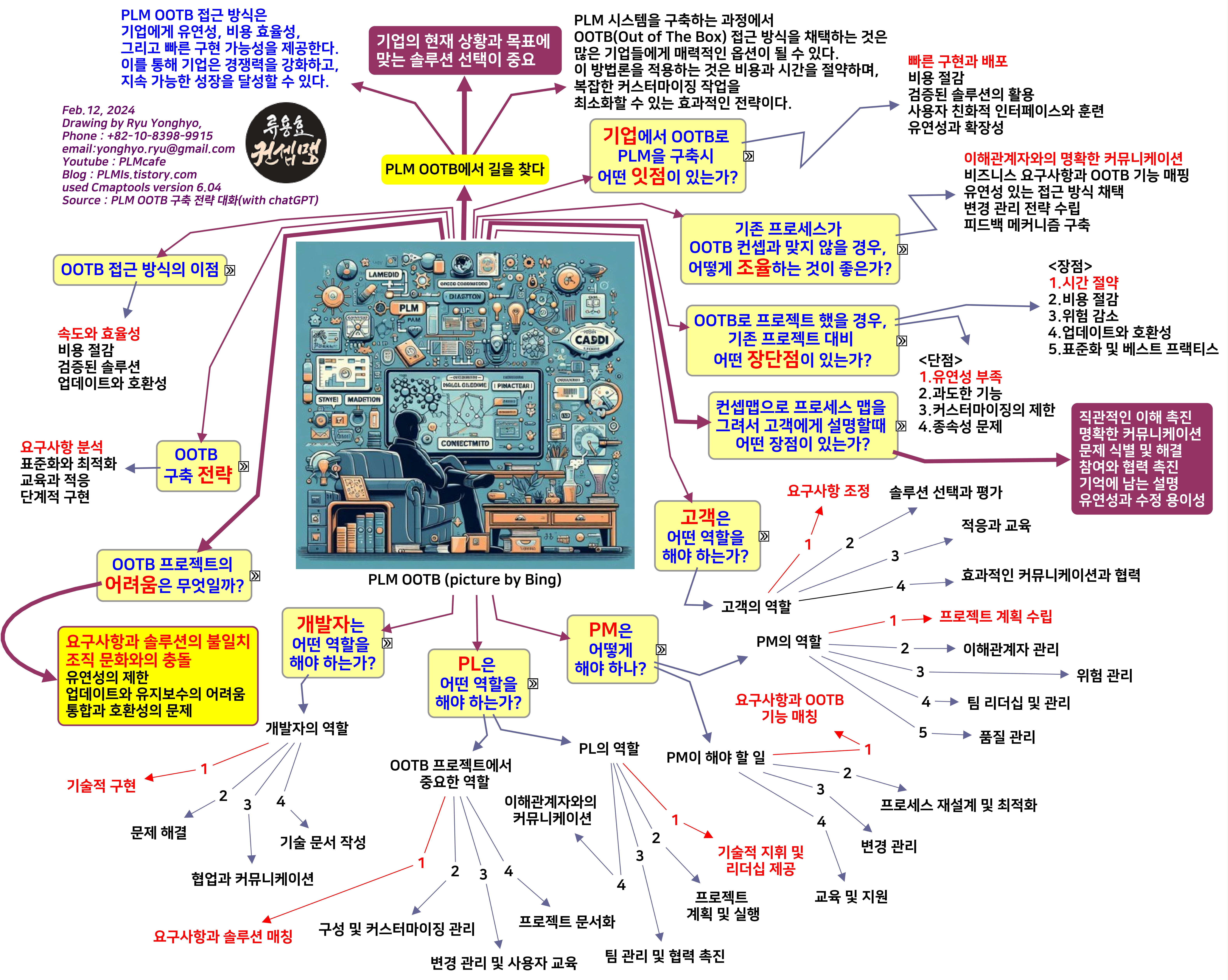 PLM OOTB구축의 주요내용을 기반으로 한장의 컨셉맵을 그려줘
