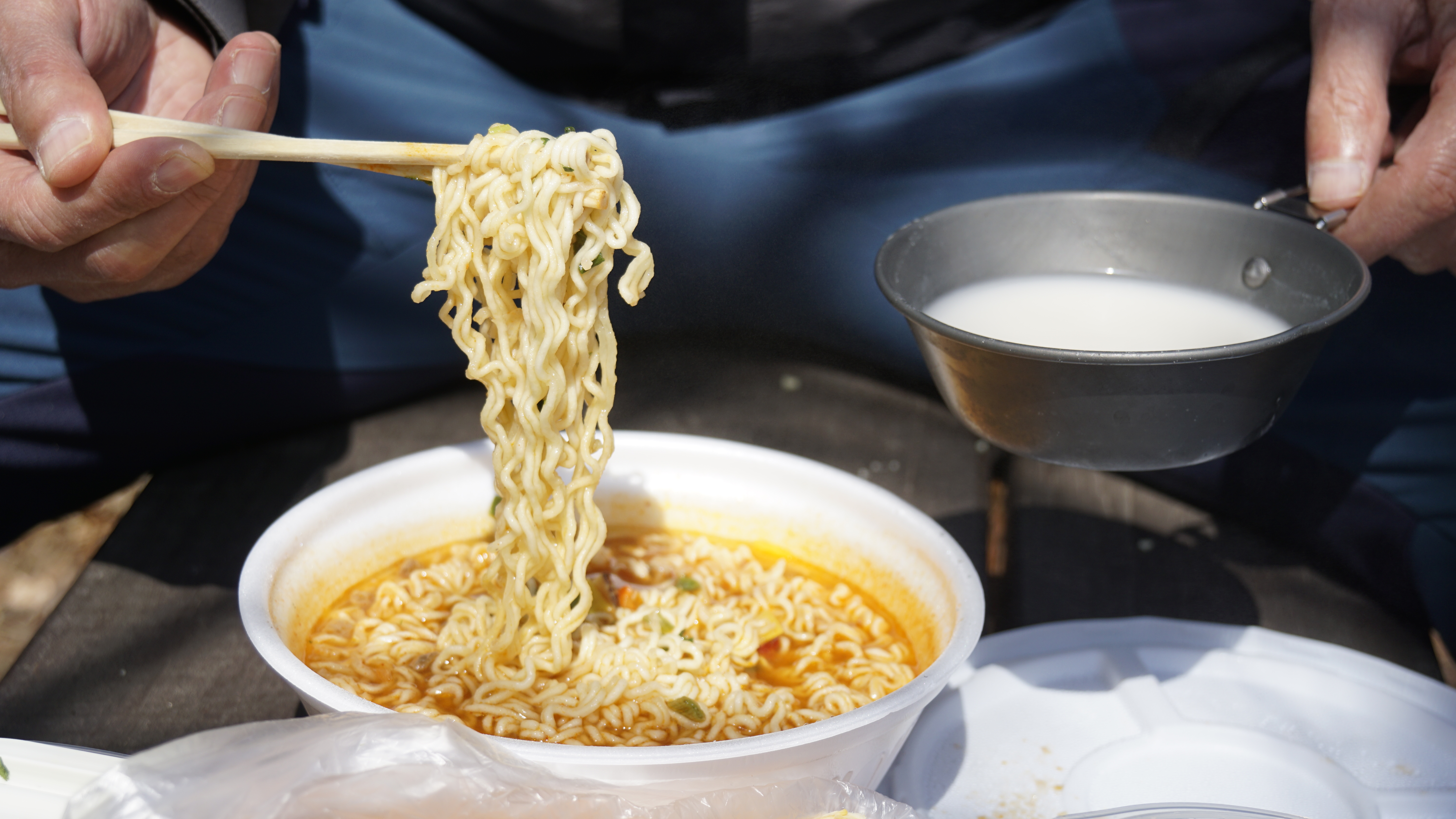 등산할때 쓸 작은 스텐 컵도 올라가는 길에 장만했다. 미리 사 놓은 홍어와 천리향, 그리고 김밥한줄, 컵라면 2개, 당근, 햄 을 각자 준비하여 남한산성입구역에서 만나 현지 조달하여 출발. 총 13km를 걸었다.