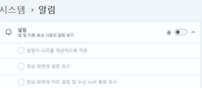 인터넷으로 찾아보니, 윈도우 11에 알림 기능으로 제어가 된다고 하는데,