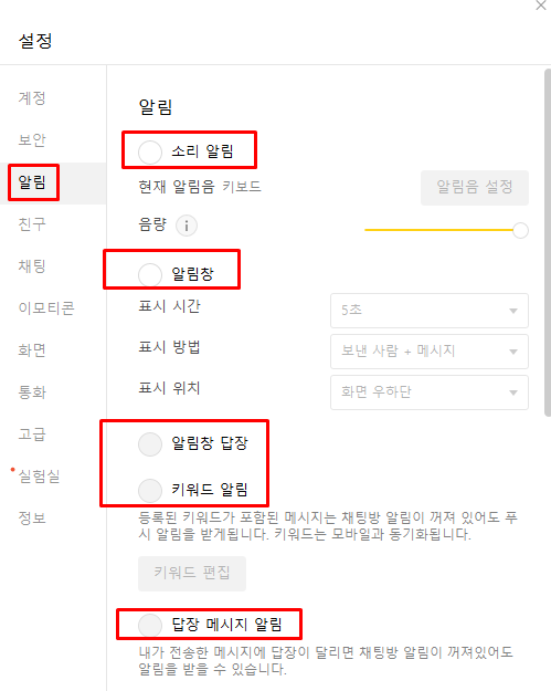 카카오톡 - 설정 - 알림 - 소리알림, 알림창을 모두 끈다.