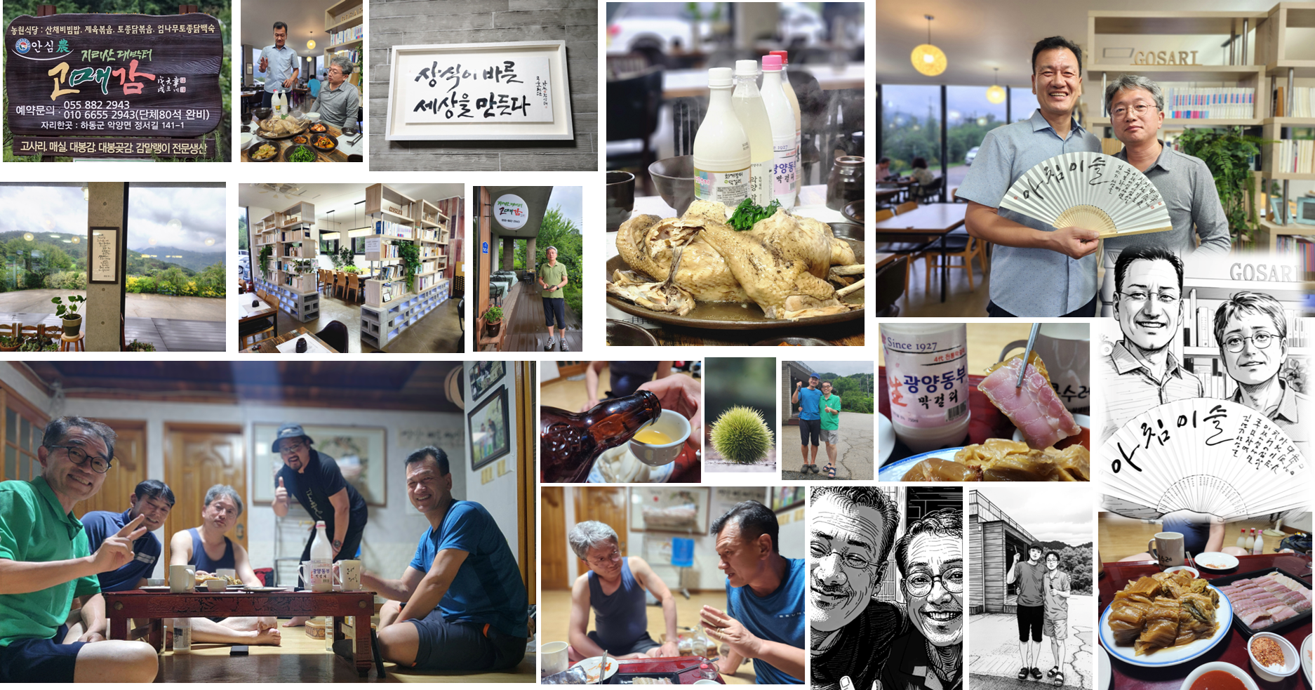 특히, 모악산 산행 후에 익산에 들러 초우공방에 들러서 친구 지인이 선물한 한일식당에서 먹었던 한우갈비전골, 황등비빔밥, 한우육회는 정말 맛있었다. 선운산에서는 선운사의 배롱나무가 참 인상적이었고, 선운산유스호스텔에서의 하룻밤도 잊을 수 없다. 또한, 지리산대박고매감에서의 저녁과 하룻밤은 쌍계사, 칠불사, 화엄사, 천은사를 투어하며 얻은 평온함과 함께 더욱 의미 있는 시간이 되었다. 천은사에서는 소나기가 내려서 빗소리를 감상하며 자연의 소리를 들을 수 있었고, 쌍계사에서는 여행을 함께한 친구가 35년 전에 글씨를 써준 장소를 다시 방문하며 감회에 젖기도 했다.