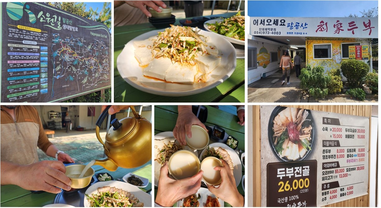 내려오는 길에 점심을 먹으려고 친구의 촉으로 "최가두부"란 곳을 발견했다. 두부는 참 맛있었다. 다만 소스로 약간 짜게 느껴졌다. 나는 운전때문에 막걸리를 눈으로 구경만 했다.