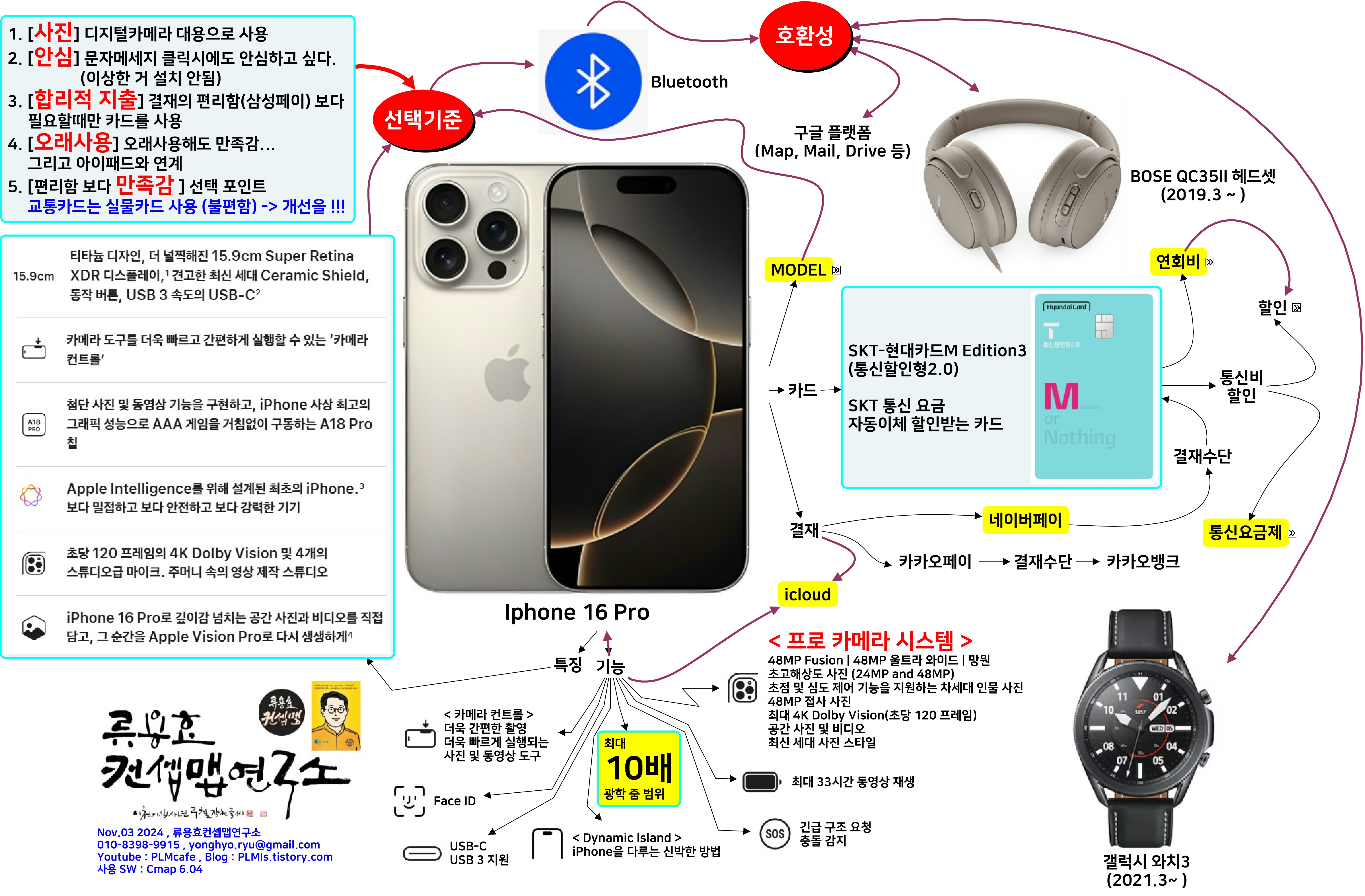 그 여파로 지갑을 항시 휴대해야 하는 번거로움이 생겼다. 개인적으로는 진정한 “편리함”이 무엇인지 탐구하고 싶은 호기심이 생겼다. 내가 아이폰으로 넘어가는 이유이기도 하다. 그 전에 아이패드를 사용하고 있던 환경도 무시 못할 요인이라 하겠다. 그리고 기존에 사용중이던 갤럭시 와치 3, BOSE 무선 헤드셋을 연결해서 사용하고 싶은 생각도 있었다. 물론 애플 액세서리로 도배해도 좋겠지만, 기존에 사용하던 것을 연결해서 한동안 사용하고 싶다. 본 내용은 어느 스마폰이 좋은가와는 무관하며, 개인의 관심사항을 기준으로 작성하였다. 본 내용은 생성형 AI의 도움을 받아 작성 되었다.