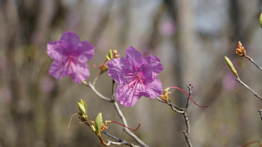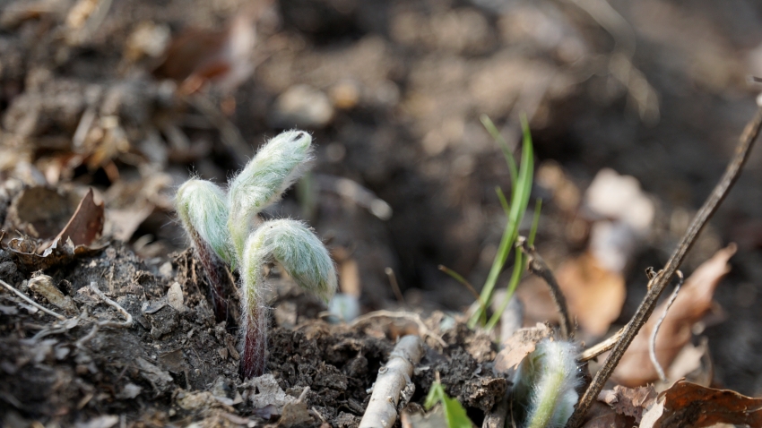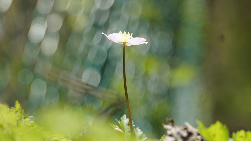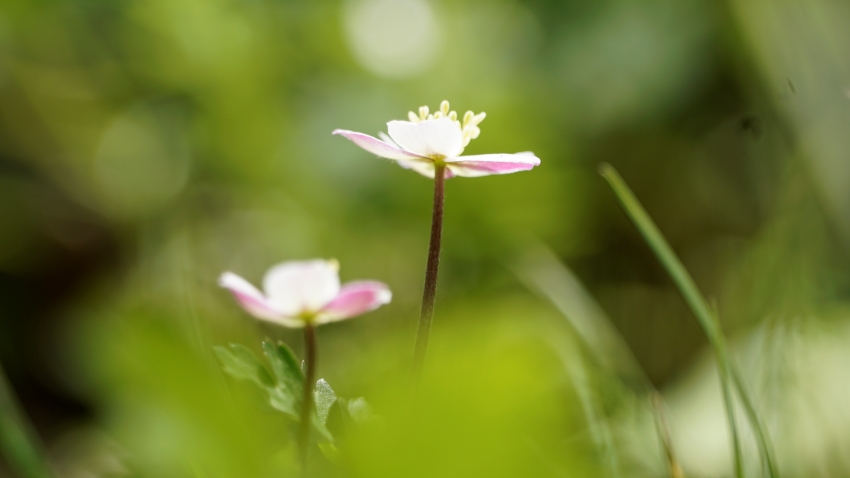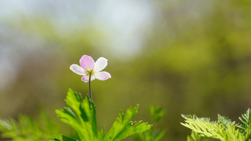 다른 바람꽃이 흰색 계열인 것과 달리 옅은 분홍색의 꽃봉오리가 특징이다.