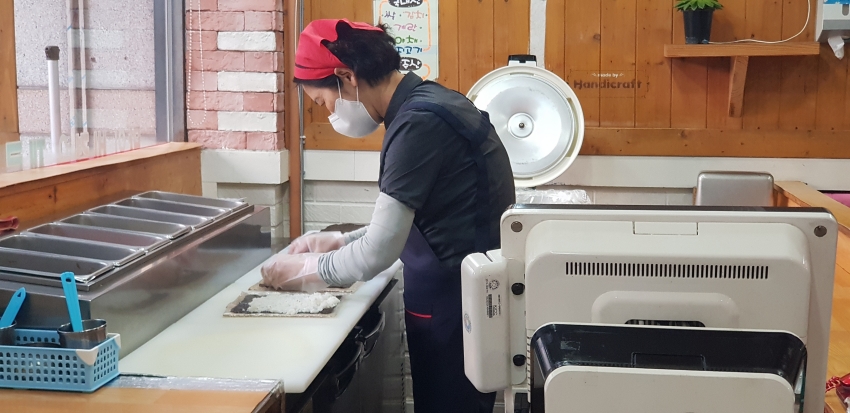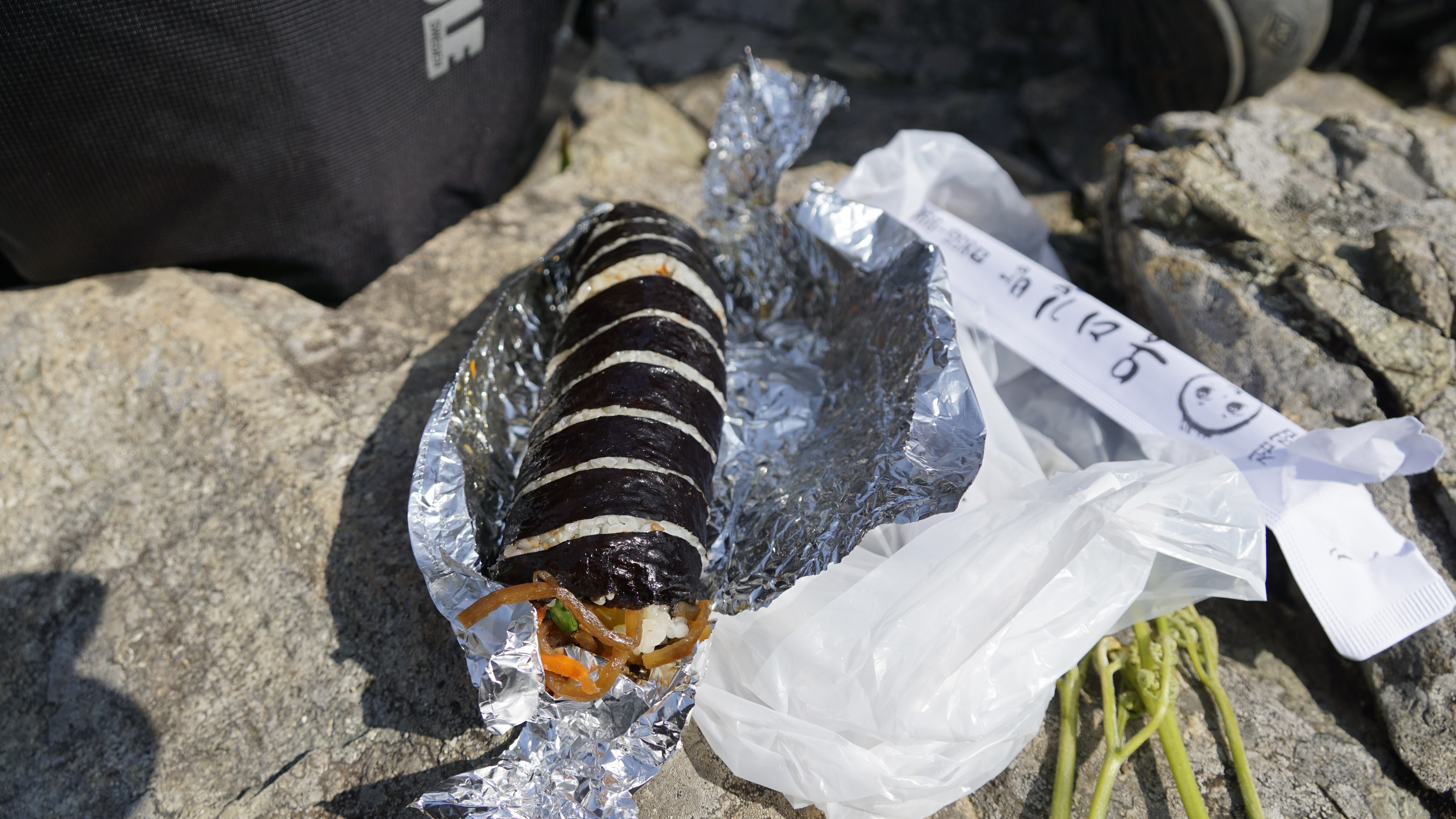 가는 길에 사천 시내에 들러 김밥을 사갔다.